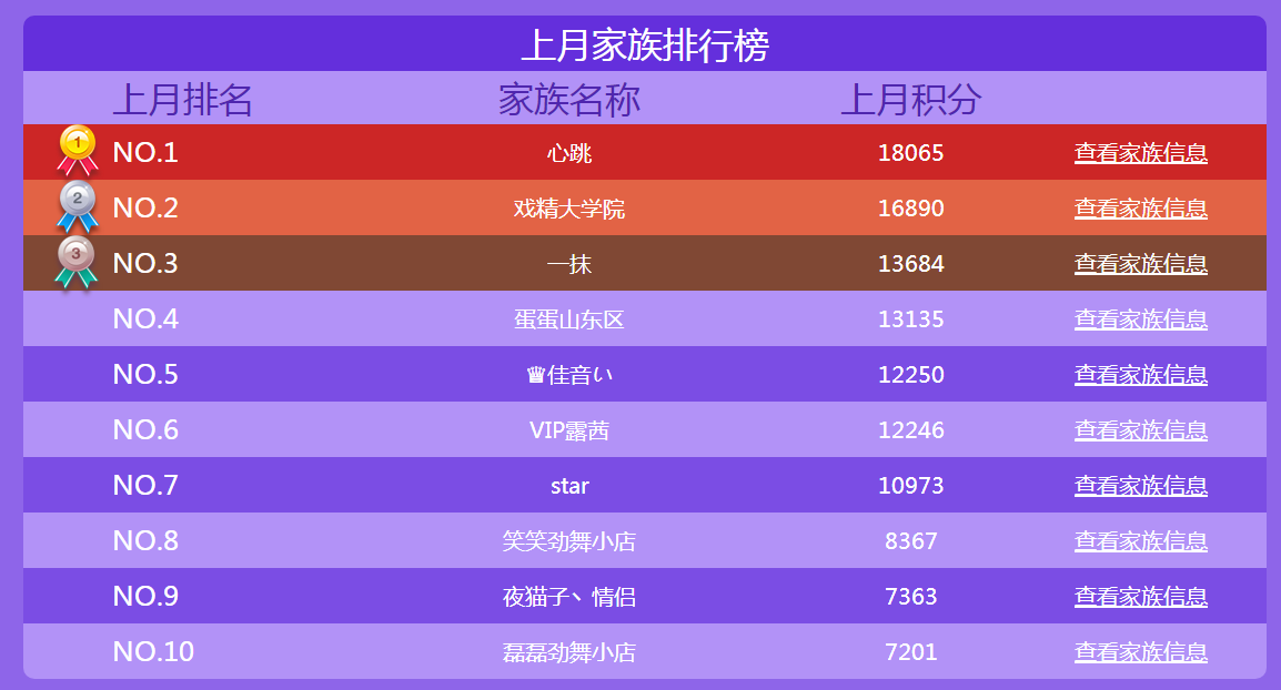 每月家族圈排行榜前十名的家族族长均可以获得:时效30天【DJ台】道具1个