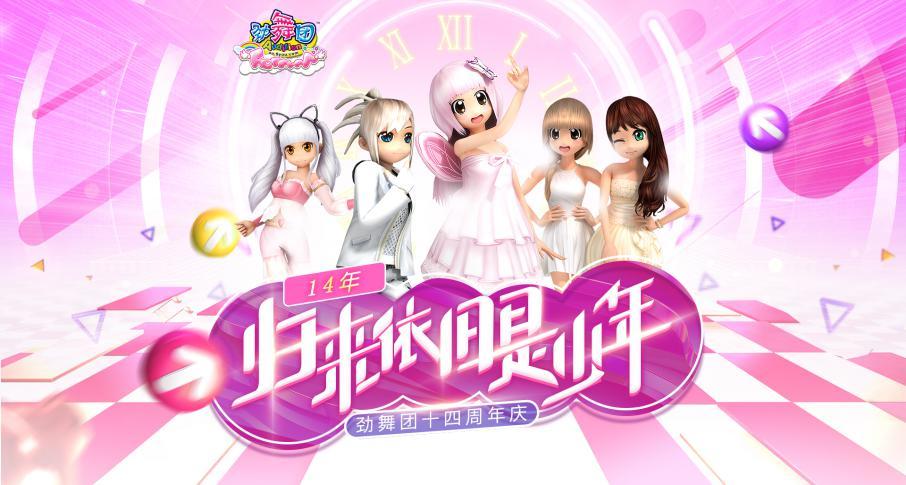 转眼间《劲舞团》一路走来14年了,这次我们决定放出14年来的最强福利!超多永久道具等你来拿!只要每日登录参与活动就可获得“地球仪”手持“樱花树下”DJ台、“咕噜兔兔”永久上衣等免费道具,参与活动人数达到达到20W人每人都将获得“青春旅行”永久上衣和永久背景卡!我们还为甜蜜的情侣们准备了金婚贺礼,为单身的小伙伴准备了单身贵族礼包一份!为了感谢14年的相伴,《劲舞团》还将根据注册时间为老用户送上“复古时代”永久套装,回归用户和新注册的用户也将获得最豪华的福利大奖哦!